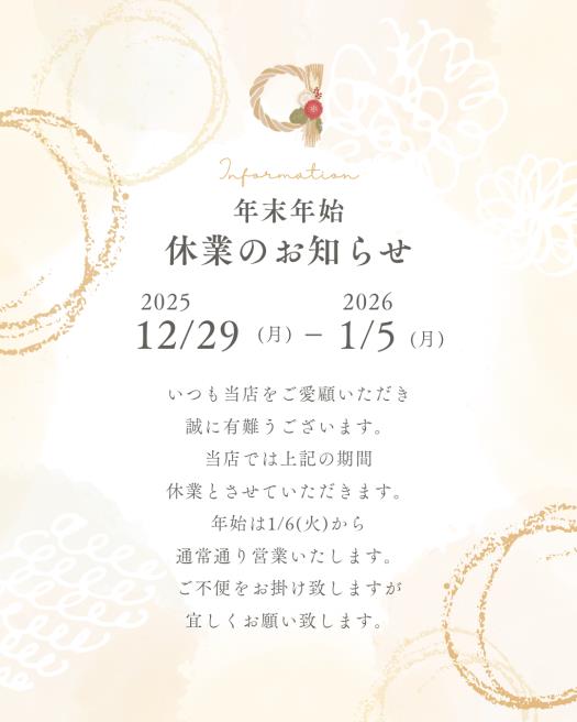 誠に勝手ながら年末年始の営業は下記の通りとさせて頂きます。